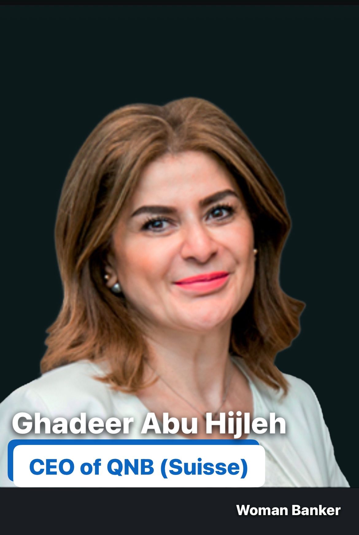 Ghadeer Abu Hijleh , the CEO of QNB (Suisse) SA based in Geneva, Switzerland, is a pioneering figure among Arab women in banking, breaking barriers and setting new standards in a traditionally male-dominated industry.